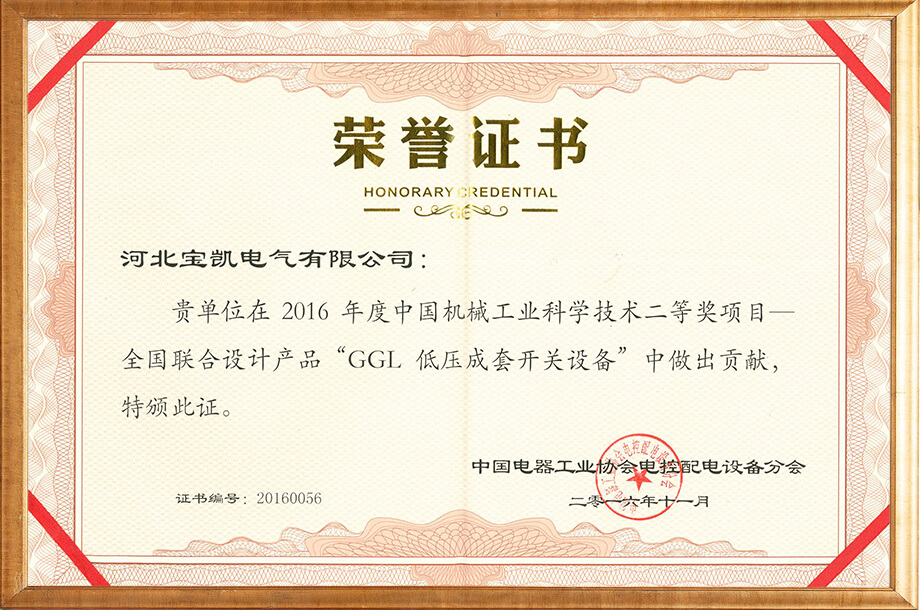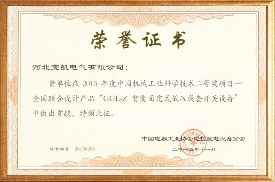 GGL-Z二等奖证书
