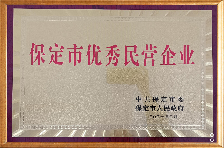 保定市优秀民营企业证书
